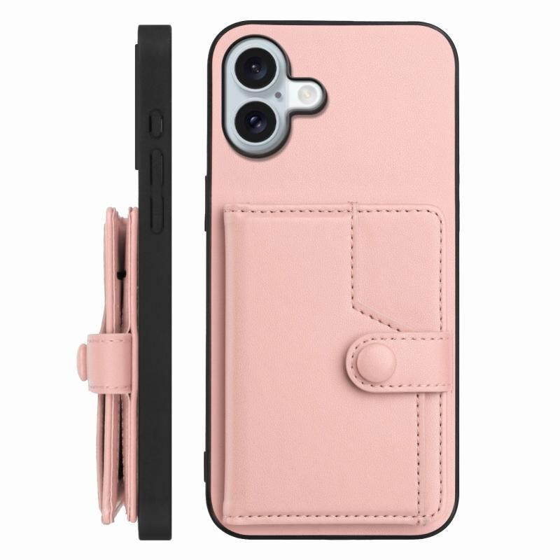 Θήκη τηλεφώνου για iPhone 16 Plus με κάρτες και κουμπιά, αντι-κλοπής RFID (ρόζ)