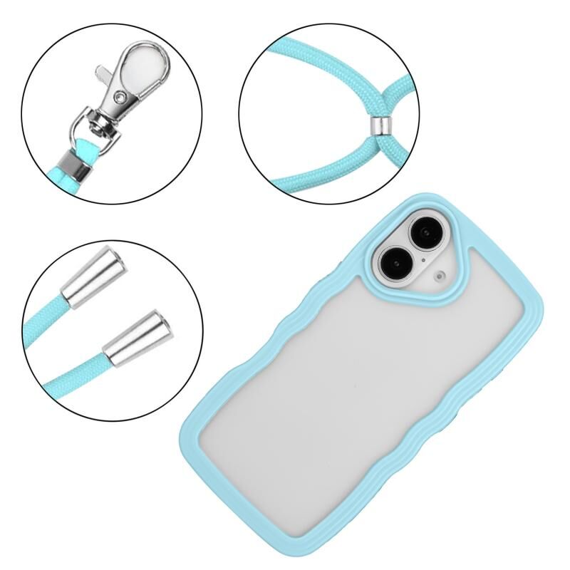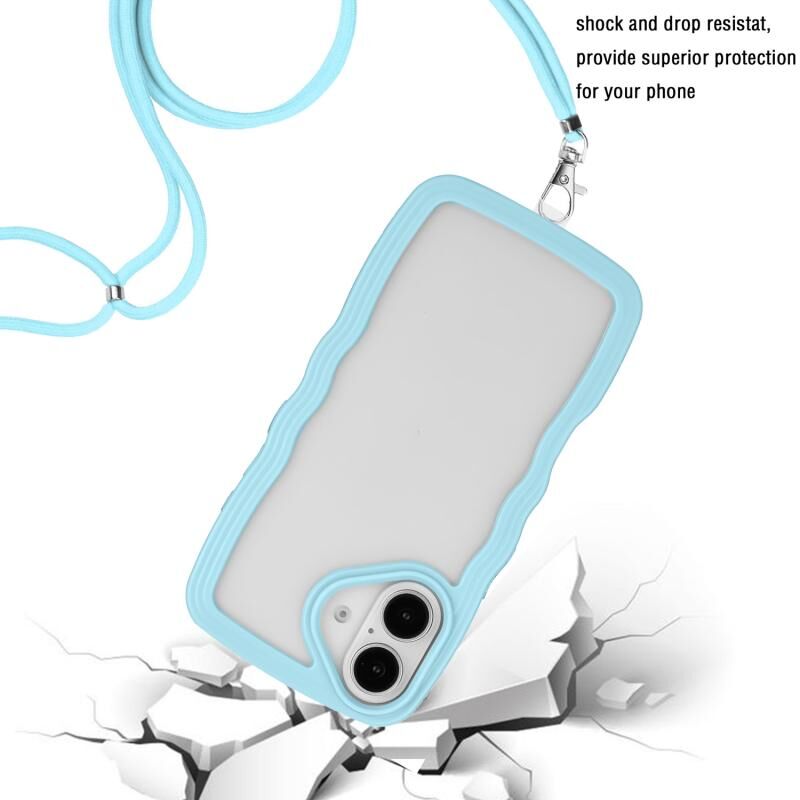 Θήκη τηλεφώνου για iPhone 16 Plus, διαφανής από TPU και PC σε χρώμα καραμέλας με κυματιστό σχέδιο και κορδόνι (Μπλε)