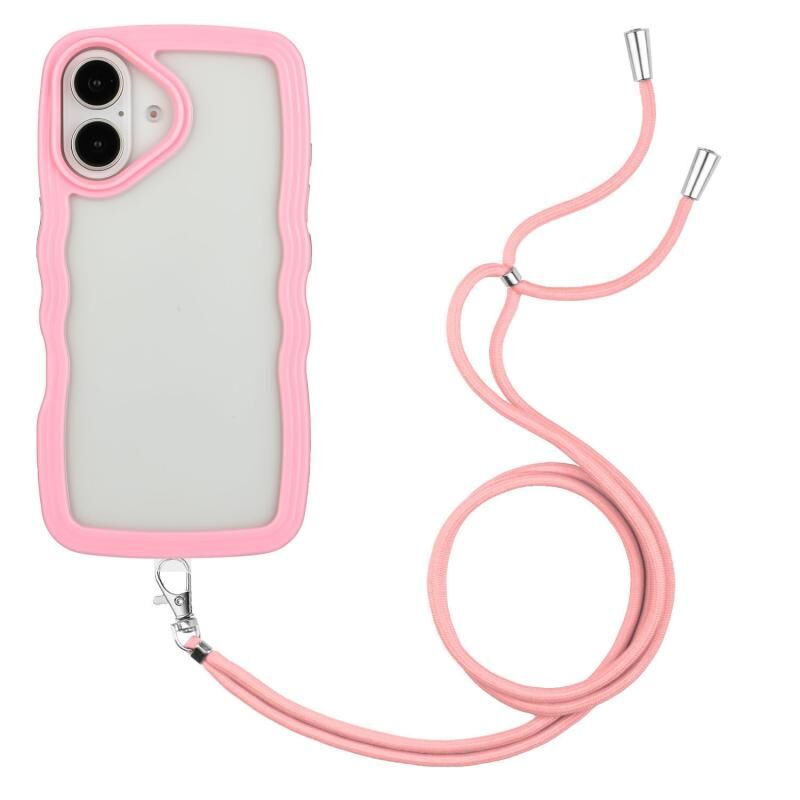 Θήκη τηλεφώνου για iPhone 16 Plus, διαφανής από TPU και PC σε χρώμα καραμέλας με κυματιστό σχέδιο και κορδόνι (ρόζ)