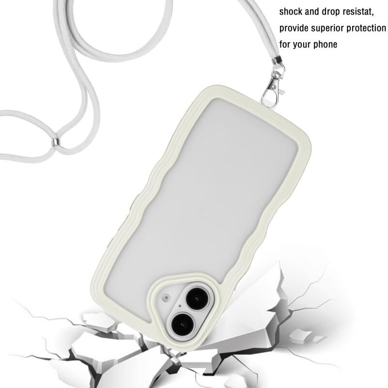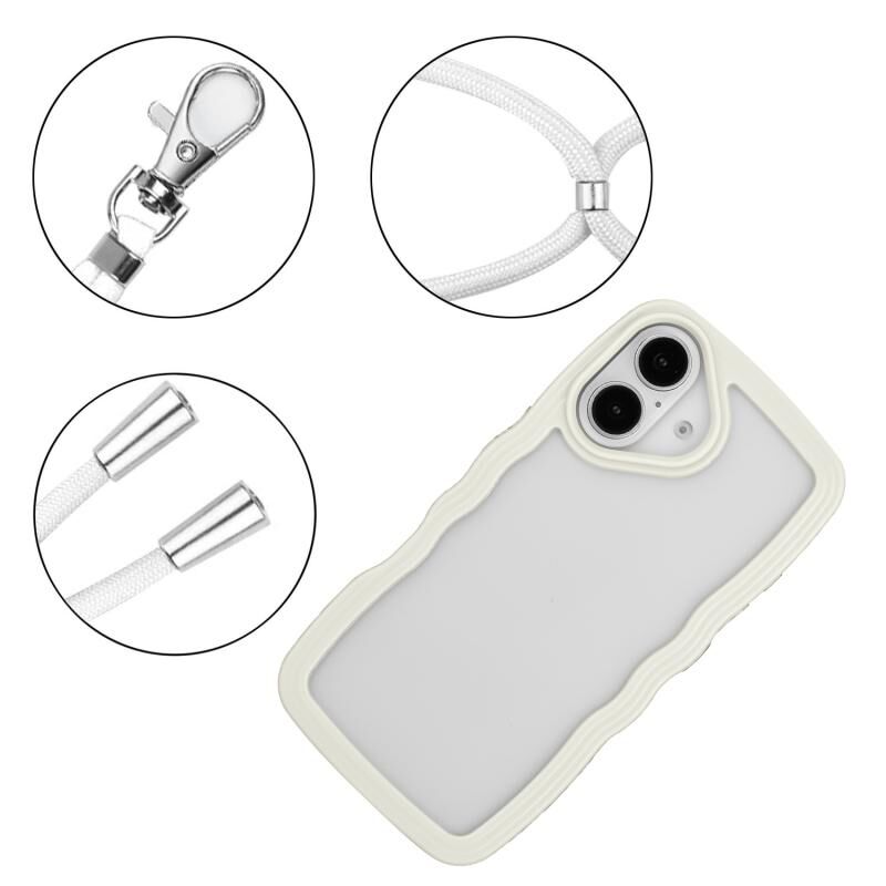 Θήκη τηλεφώνου για iPhone 16 Plus, διαφανής από TPU και PC σε χρώμα καραμέλας με κυματιστό σχέδιο και κορδόνι (Λευκό)