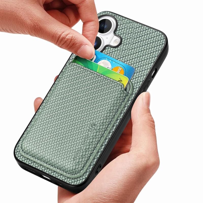 For iPhone 16 Plus Carbon Fiber Leather Card Magsafe Phone Case(Green)