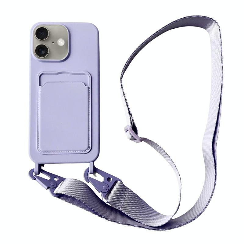 Θήκη σιλικόνης υγρού για iPhone 16 Plus με υποδοχή κάρτας και κορδόνι (Μαύρο)