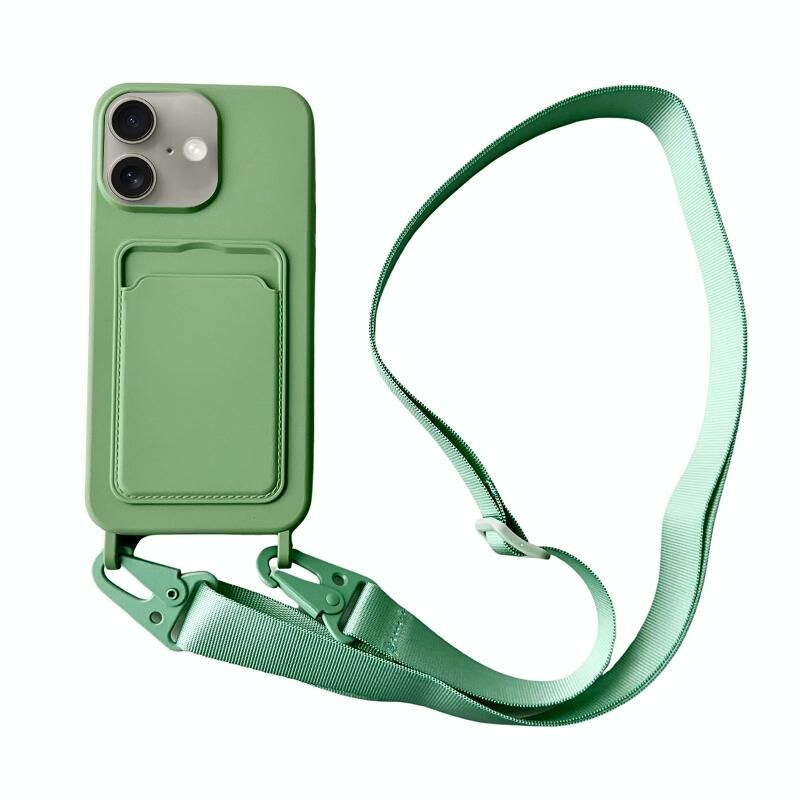 Θήκη σιλικόνης υγρού για iPhone 16 Plus με υποδοχή κάρτας και κορδόνι (Μαύρο)