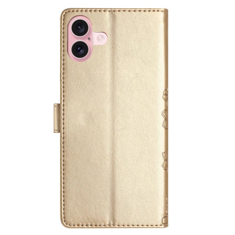 For iPhone 16 Plus Cherry Blossom Butterfly Skin Feel Embossed PU Phone Case(Gold)