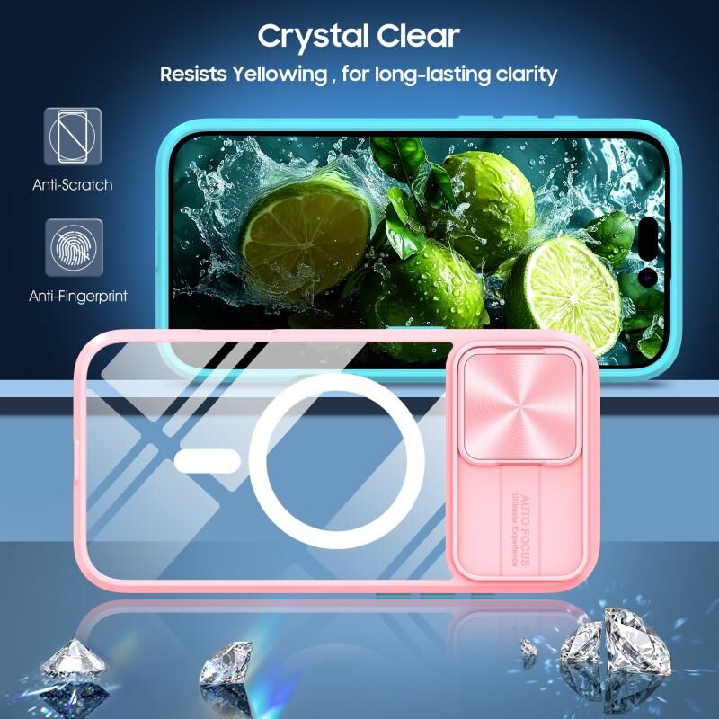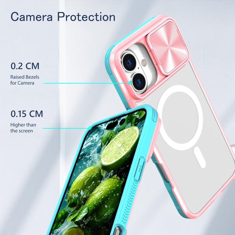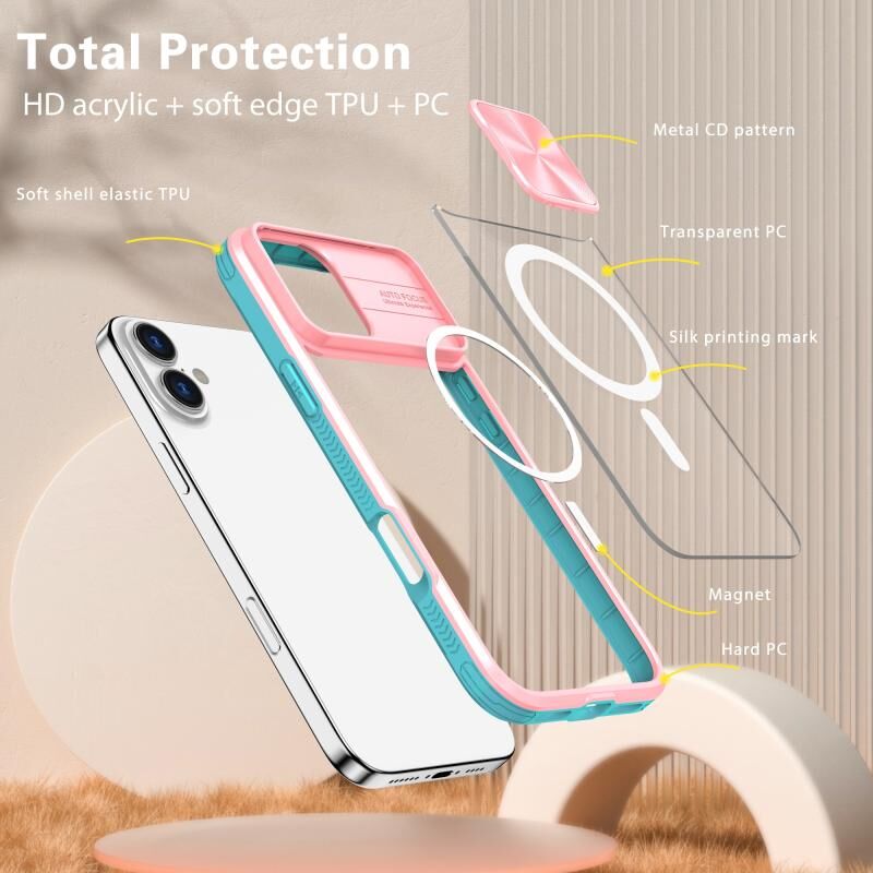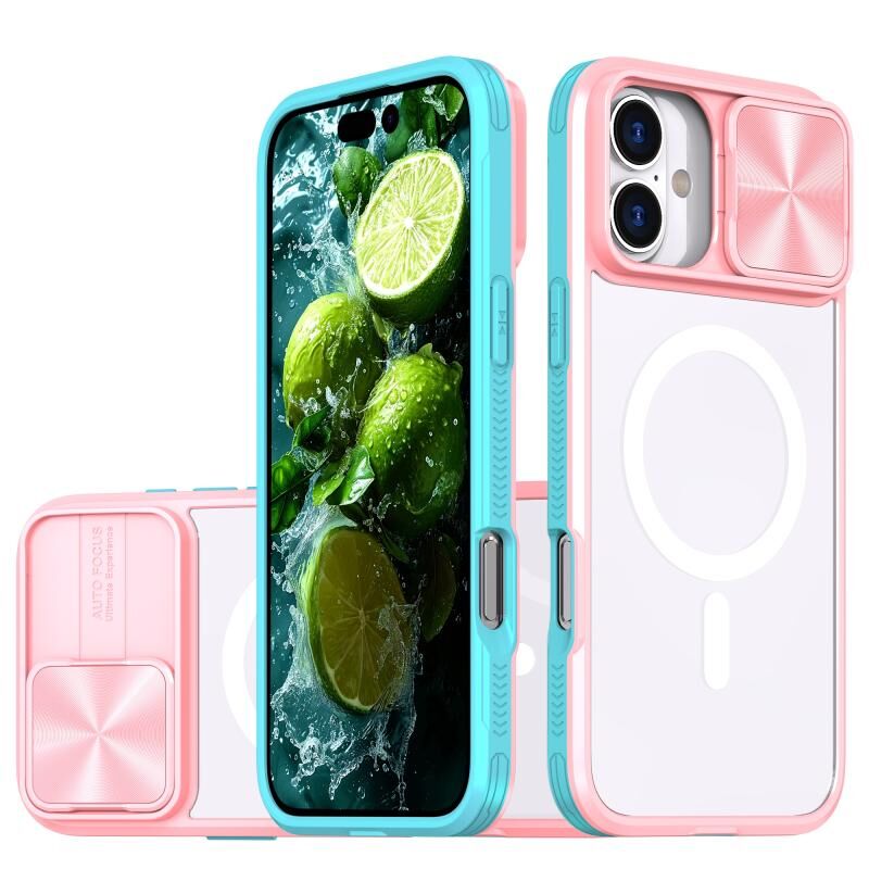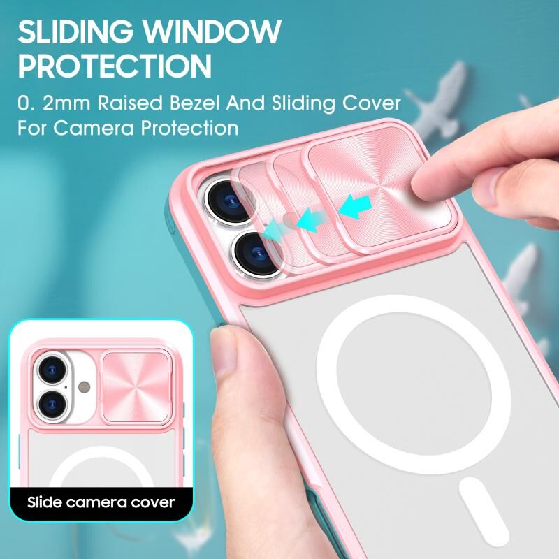 Θήκη κινητού τηλεφώνου πλήρους κάλυψης για iPhone 16 Plus, διαφανές ακρυλικό + PC + TPU, με συρόμενο κάλυμμα φακού MagSafe (Ναυτικό Μπλε)
