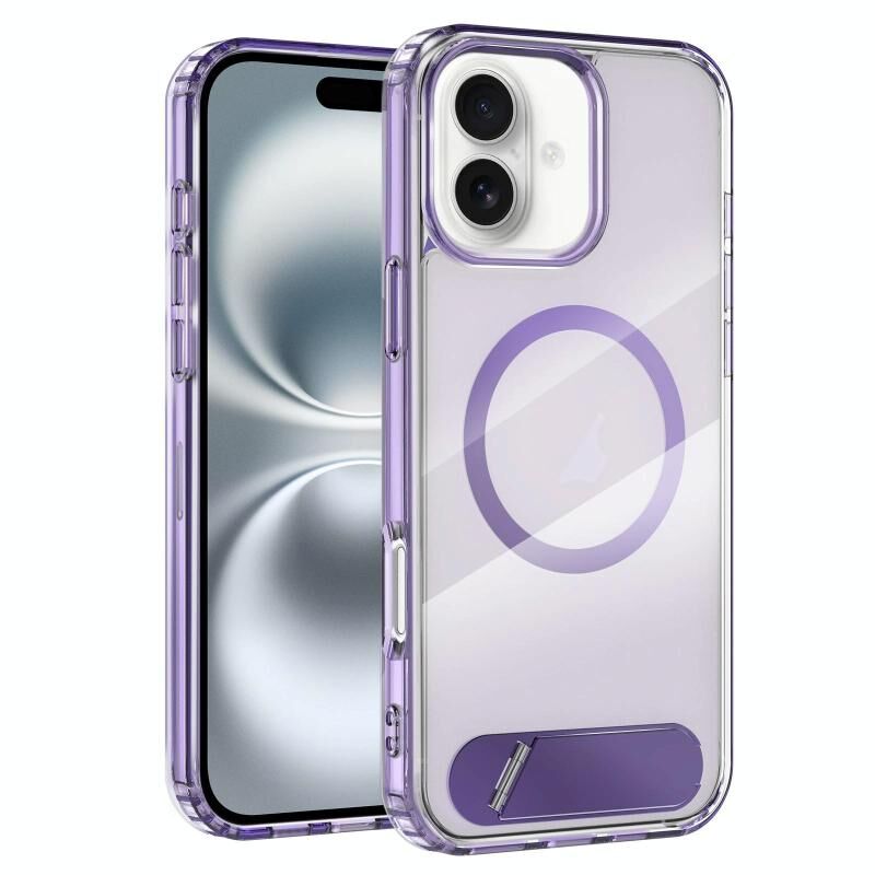Θήκη τηλεφώνου για iPhone 16 Plus, Διάφανη Υβριδική PC TPU με MagSafe και Στήριξη (Μωβ)
