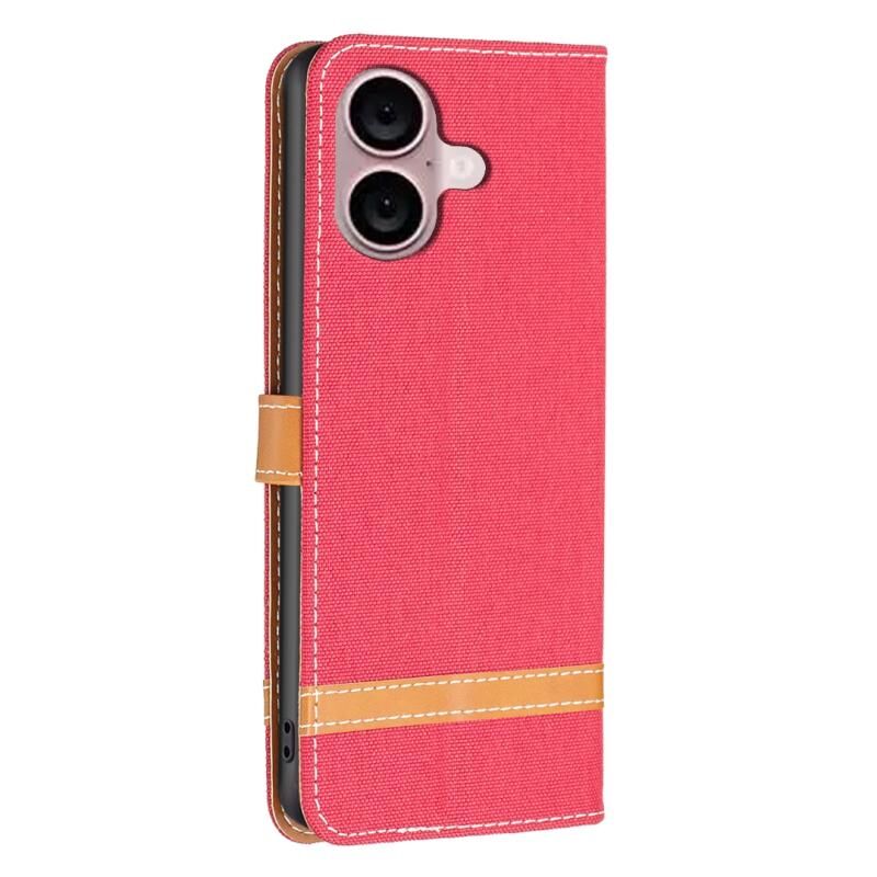Θήκη τηλεφώνου από δέρμα με υφή τζιν σε μπλοκ χρώματος για iPhone 16 Plus (Κόκκινο)