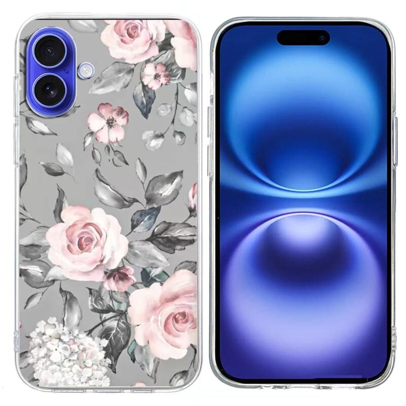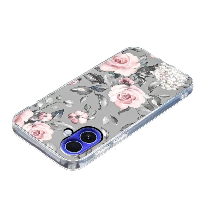 For iPhone 16 Plus Colorful Painting Pattern TPU Phone Case(Flowers On Grey)