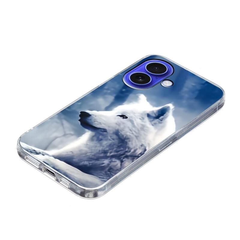 For iPhone 16 Plus Colorful Painting Pattern TPU Phone Case(White Wolf)