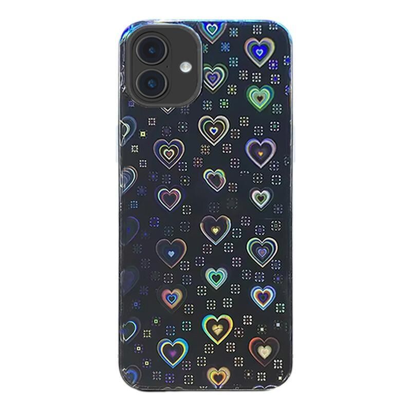 Αυτοκόλλητο για iPhone 16 Plus, πολύχρωμη μεμβράνη για το πίσω μέρος του τηλεφώνου (Laser Hearts)