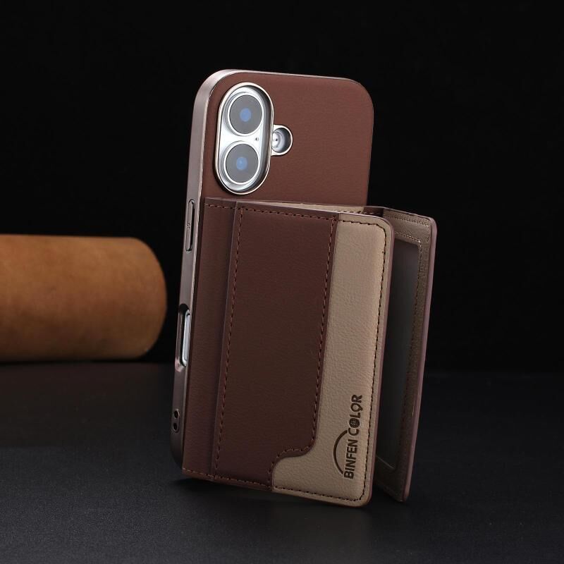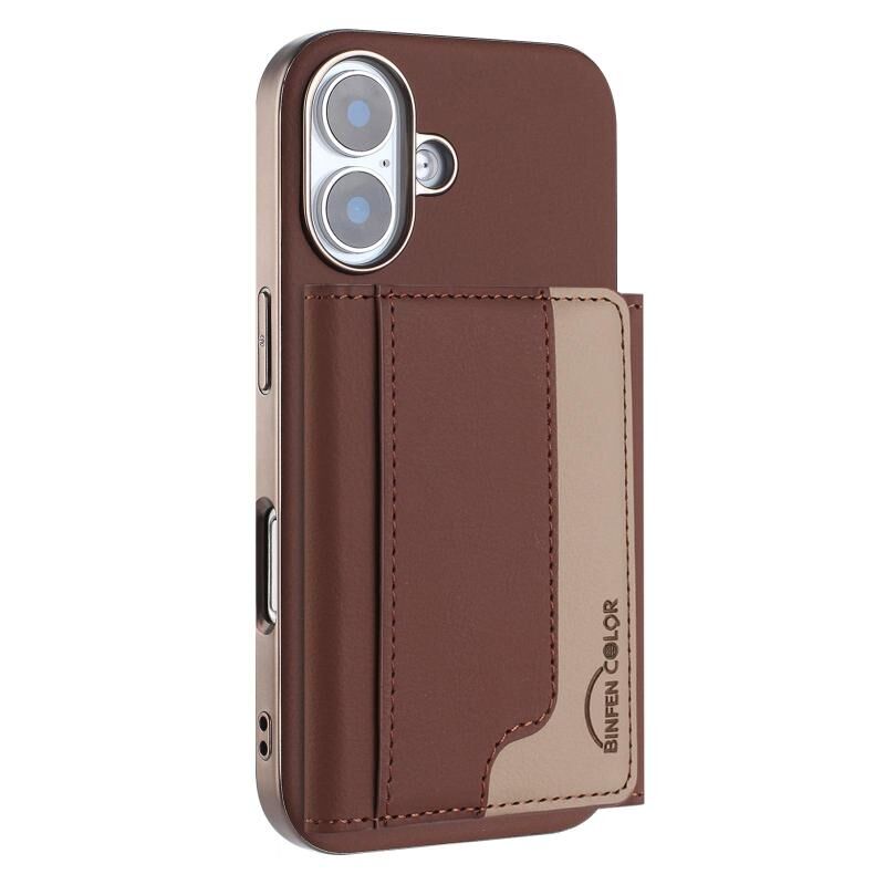 For iPhone 16 Plus Colour Matching Horizontal Magnetic Card Bag RFID MagSafe Phone Case(Brown)