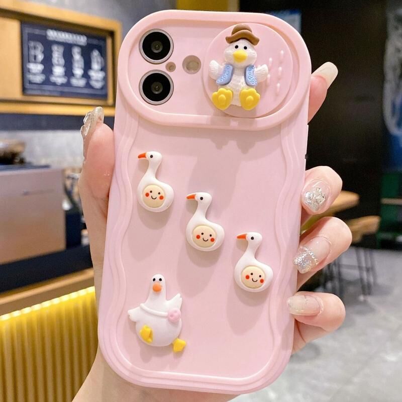 Θήκη τηλεφώνου με δημιουργικό 3D σχέδιο πάπιας, παράθυρο ολίσθησης και πλήρη κάλυψη για iPhone 16 Plus (ρόζ)