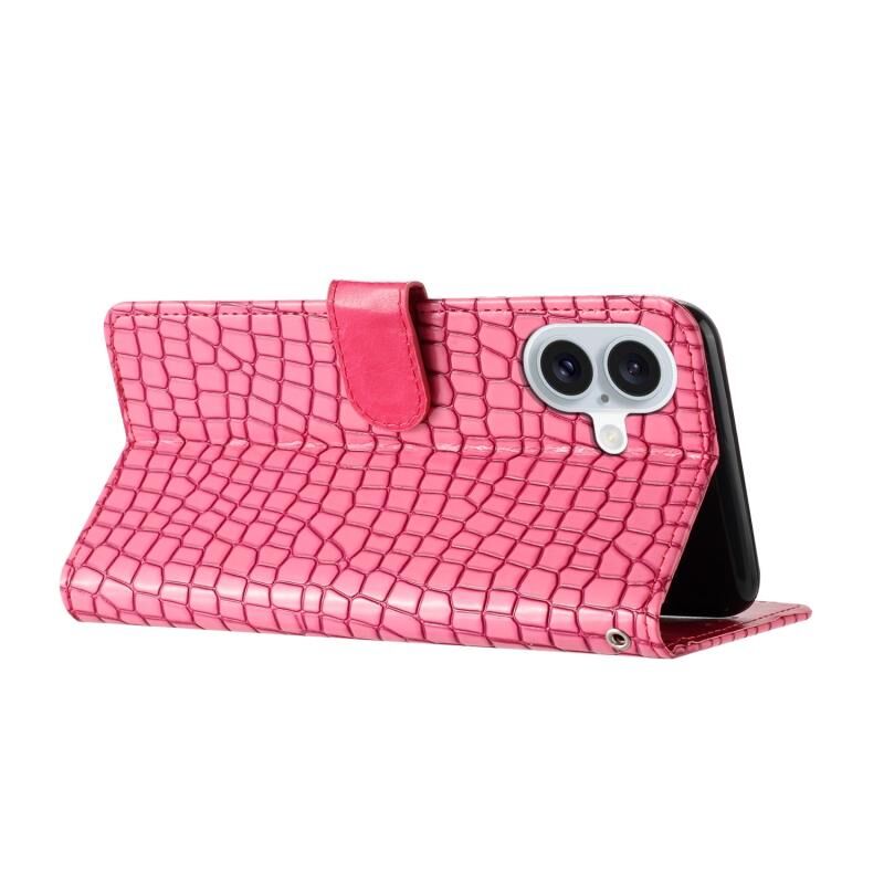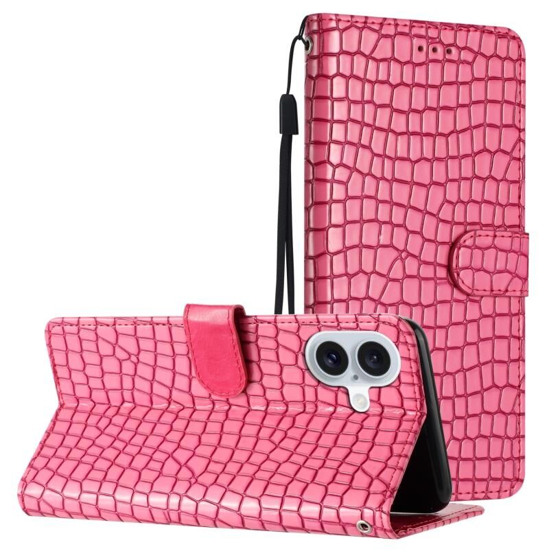 Θήκη τηλεφώνου από δέρμα με οριζόντιο άνοιγμα και υφή κροκόδειλου για iPhone 16 Plus (Κόκκινο Ρόδι)