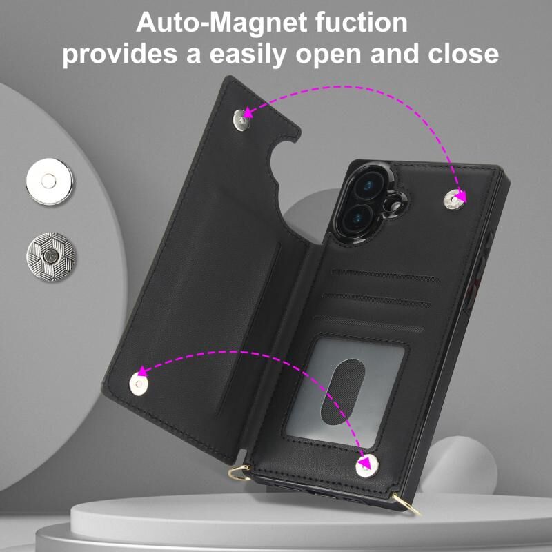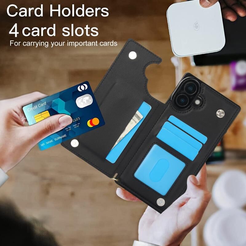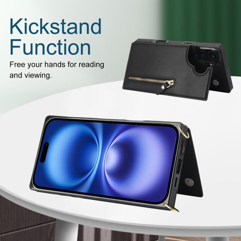 Θήκη τηλεφώνου για iPhone 16 Plus, διαγώνια, με φερμουάρ και τετράγωνο σχήμα (Μαύρο)