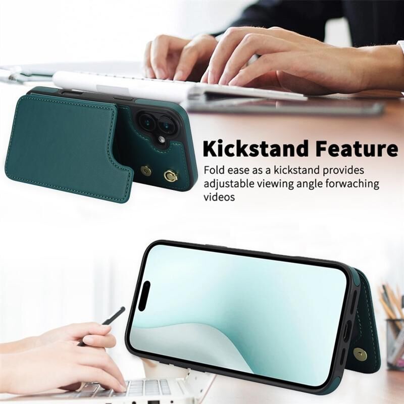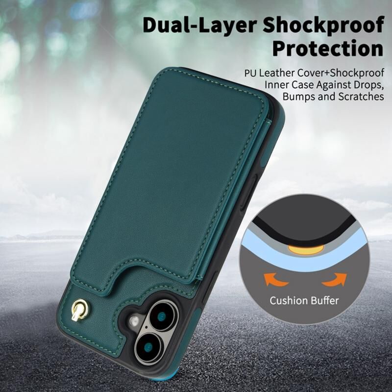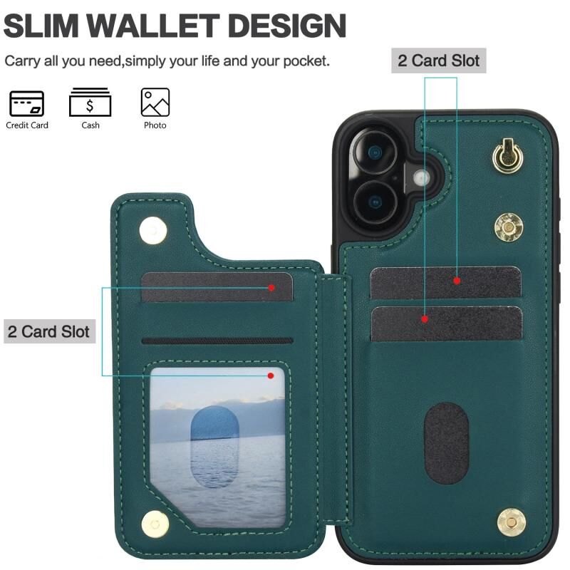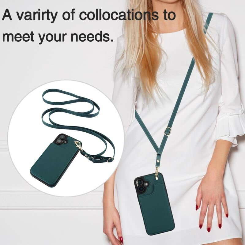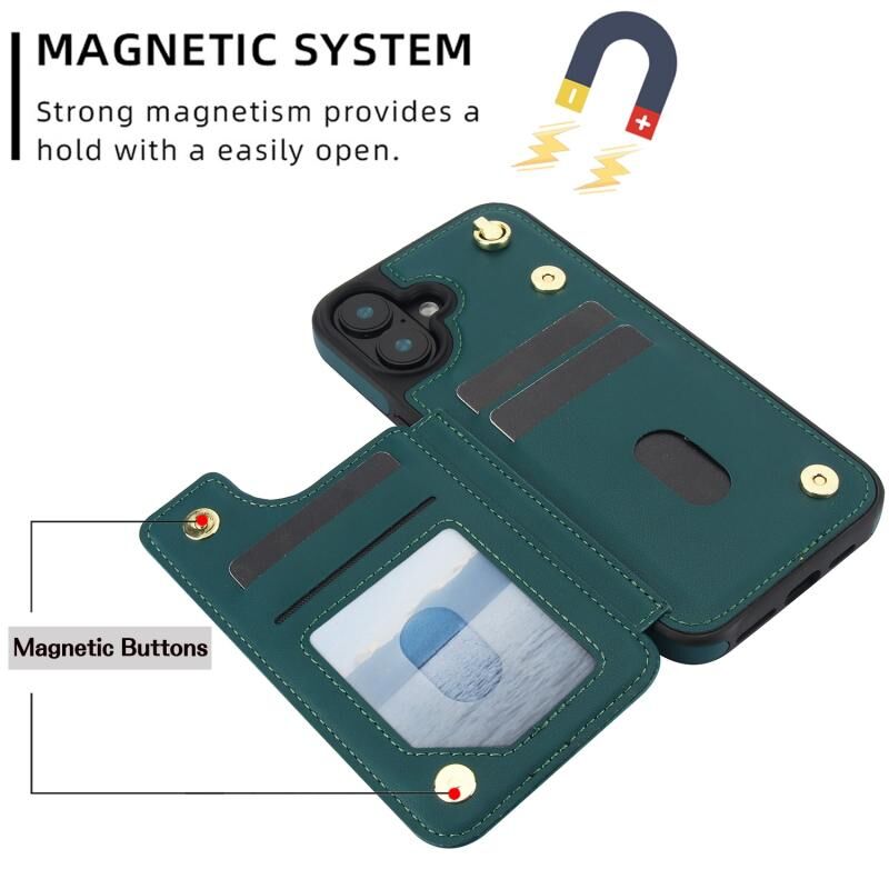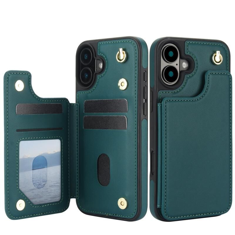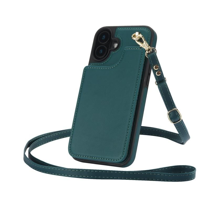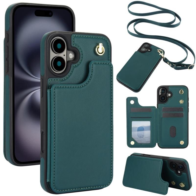 Θήκη τηλεφώνου από δέρμα για iPhone 16 Plus, με διπλή αγκράφα και σχέδιο τσάντας crossbody (πράσινο)