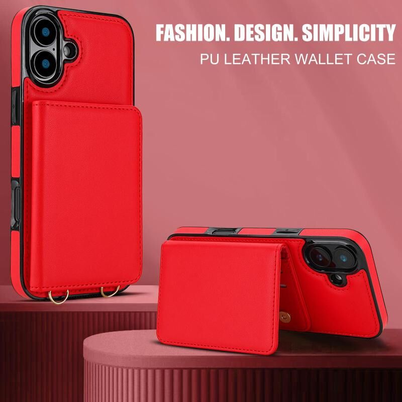 For iPhone 16 Plus Crossbody Dual-buckle Wallet RFID Back Leather Phone Case(Red)