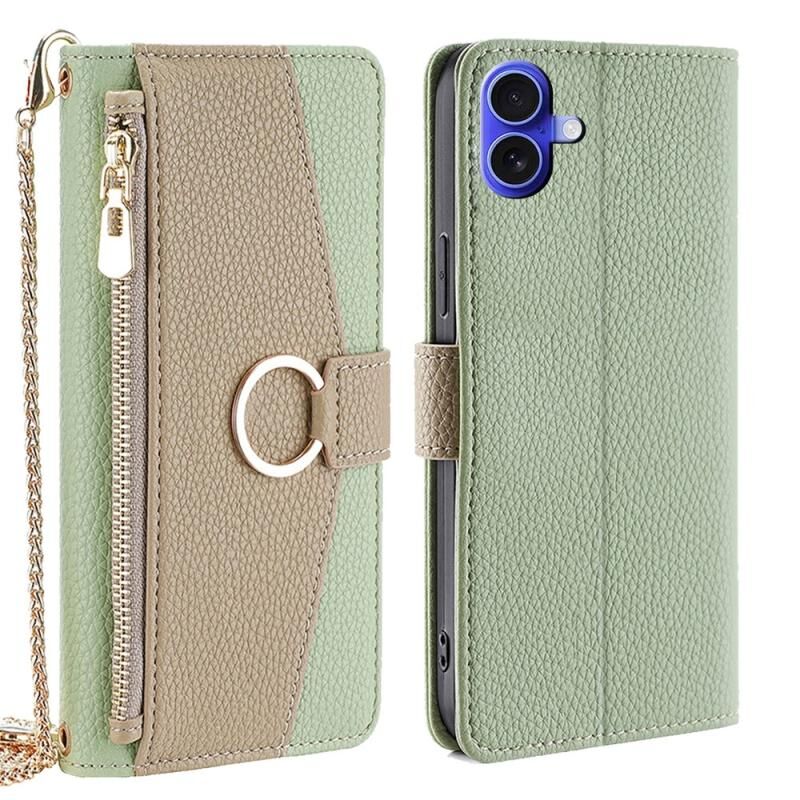 For iPhone 16 Plus Crossbody Litchi Texture Leather Phone Case(Green)