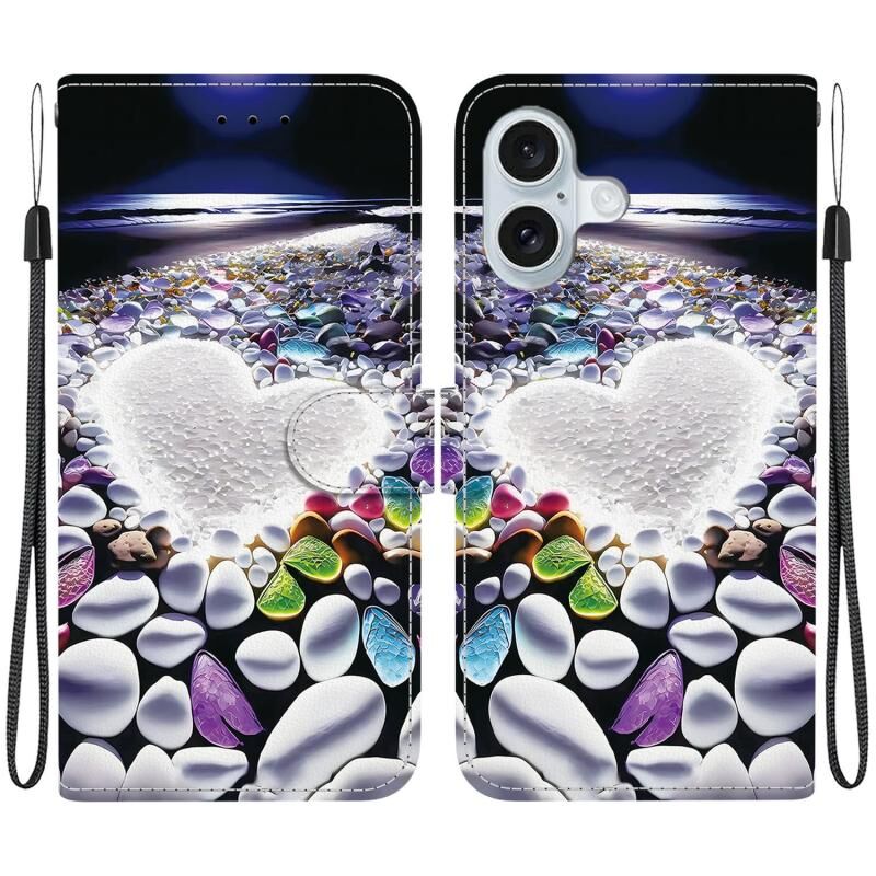 For iPhone 16 Plus Crystal Texture Colored Drawing Leather Phone Case(Heart Shaped)
