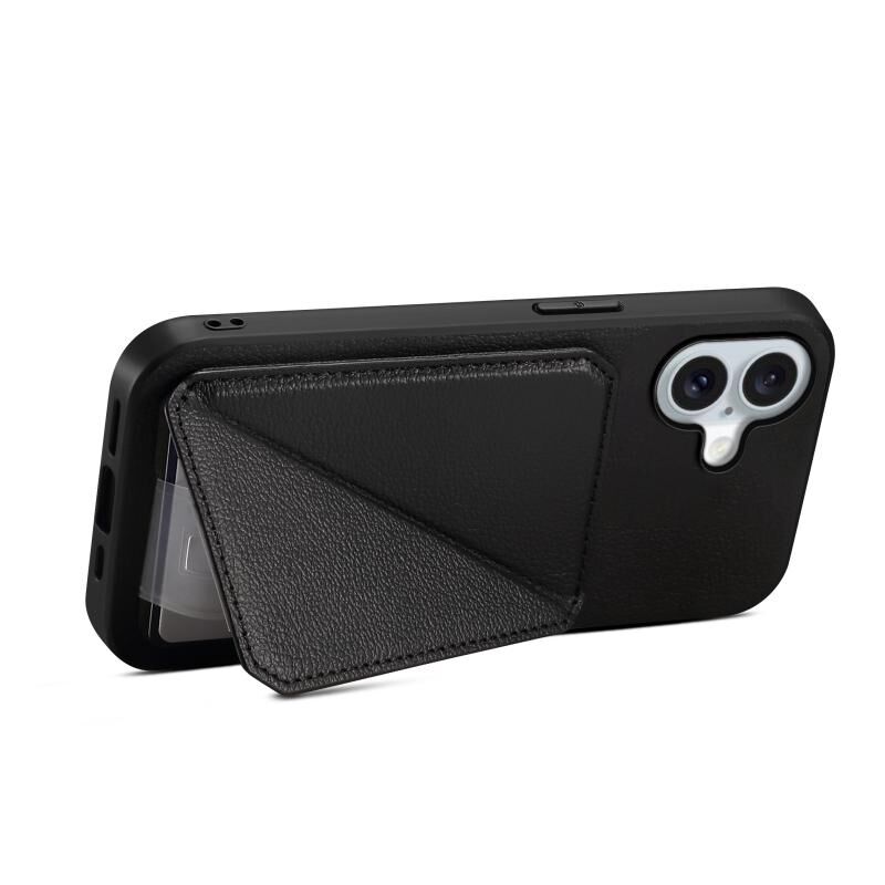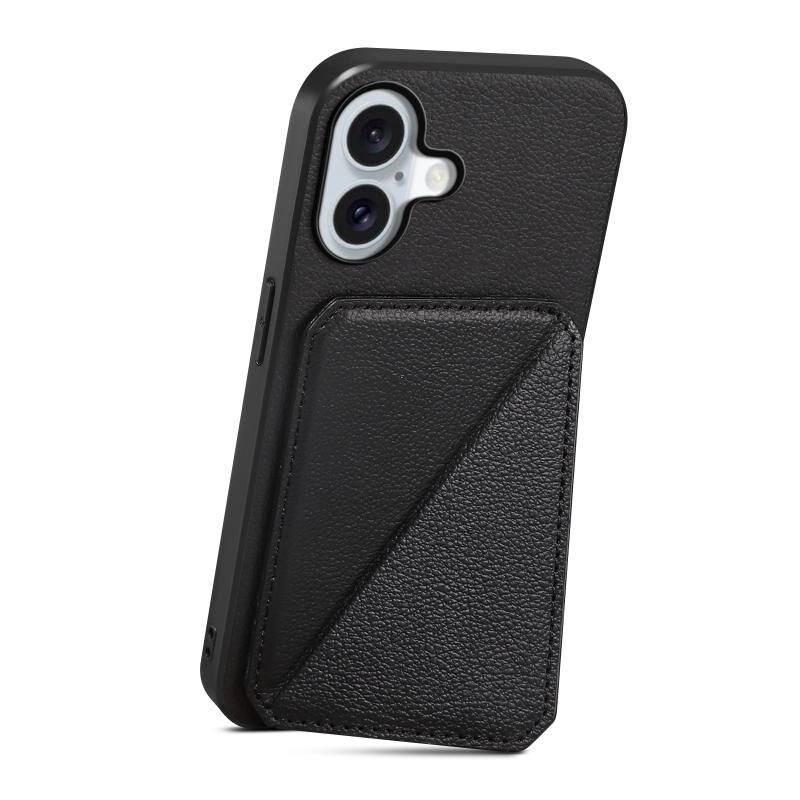 Θήκη τηλεφώνου για iPhone 16 Plus D04 με υφή μοσχαριού και διπλή υποδοχή κάρτας (Μαύρο)