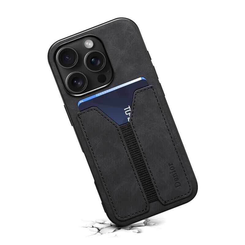 Θήκη τηλεφώνου για iPhone 16 Plus Denior D07 DV με ελαστική υποδοχή κάρτας και πίσω κάλυμμα από PU (Μαύρο) (Μαύρο)