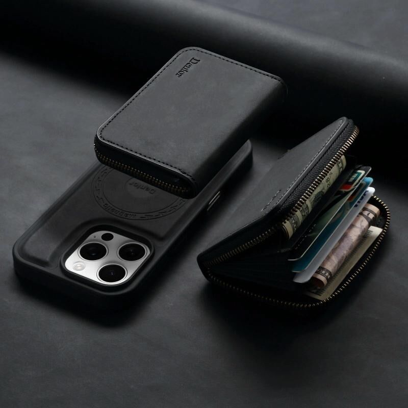 2. Αποσπώμενη Σχεδίαση Θήκης Κάρτας με Φερμουάρ: Η θήκη και η θήκη καρτών με φερμουάρ μπορούν εύκολα να αποσπαστούν και να συνδυαστούν χρησιμοποιώντας ισχυρούς μαγνήτες.