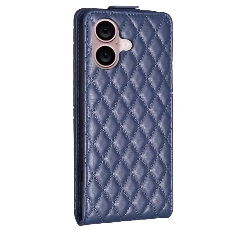 Θήκη τηλεφώνου δερμάτινη κάθετη αναδιπλούμενη με σχέδιο διαμαντόπλεγμα για iPhone 16 Plus (Μαύρο)