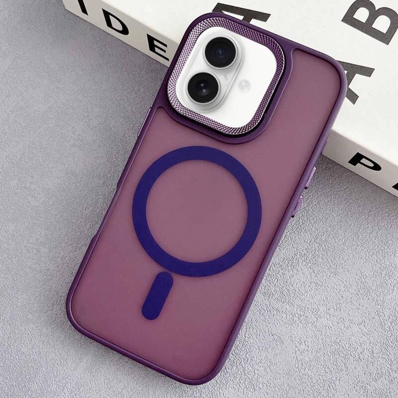 Θήκη τηλεφώνου για iPhone 16 Plus, Υβριδική από PC και TPU, με Μαγνητική Στήριξη MagSafe και Διακοσμητικό Σκελετό Φακού (Μωβ)
