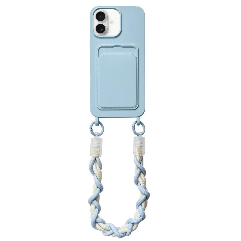 For iPhone 16 Plus Dopamine Card Slot Phone Case with Lanyard(Blue)