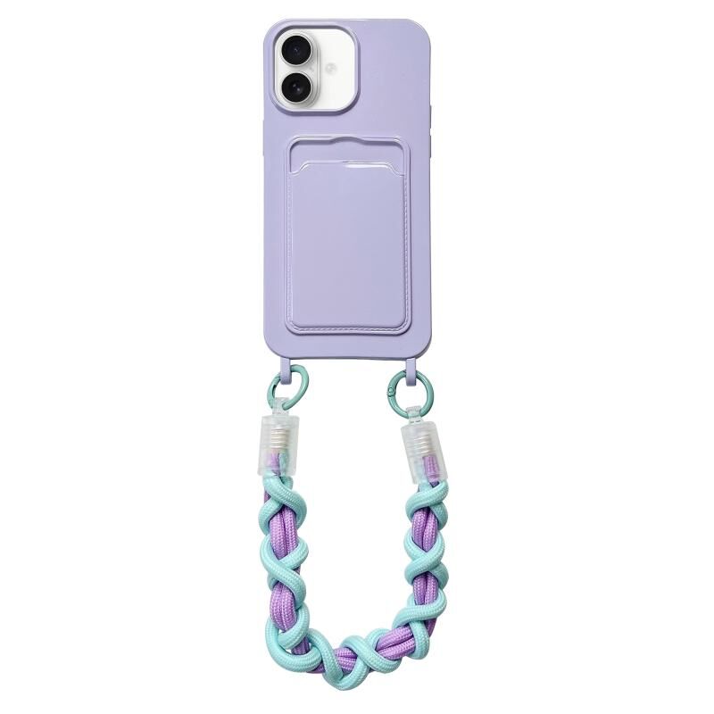 Θήκη τηλεφώνου για iPhone 16 Plus με υποδοχή κάρτας και κορδόνι (Μωβ)