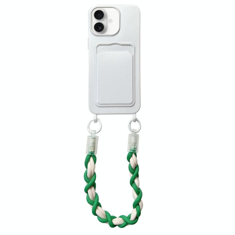 Θήκη τηλεφώνου για iPhone 16 Plus με υποδοχή κάρτας και κορδόνι (Λευκό)