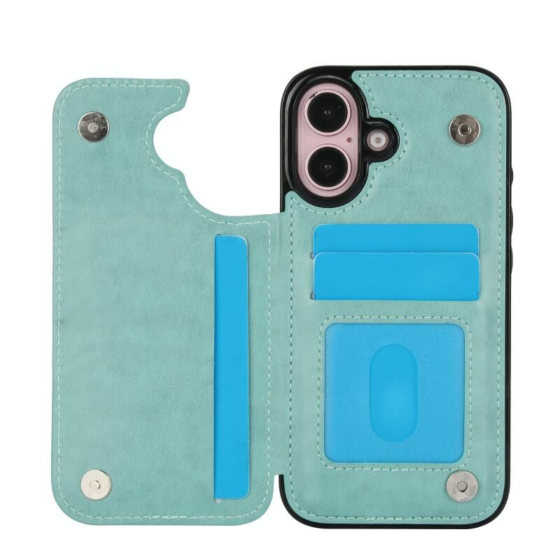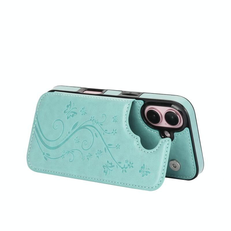 For iPhone 16 Plus Double Buckle Butterfly Embossing PU Phone Case(Green)