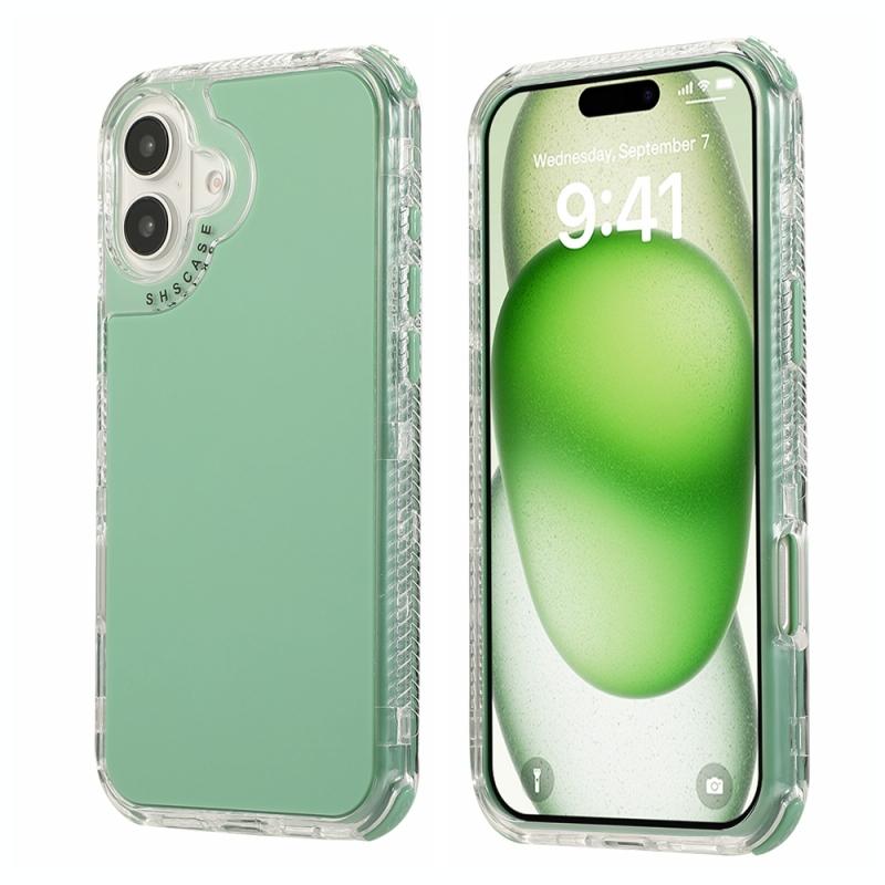 For iPhone 16 Plus Dreamland 3 in 1 Solid Color Transparent Frame PC + TPU Phone Case(Green)