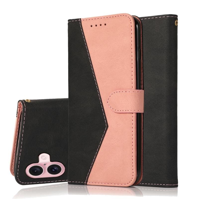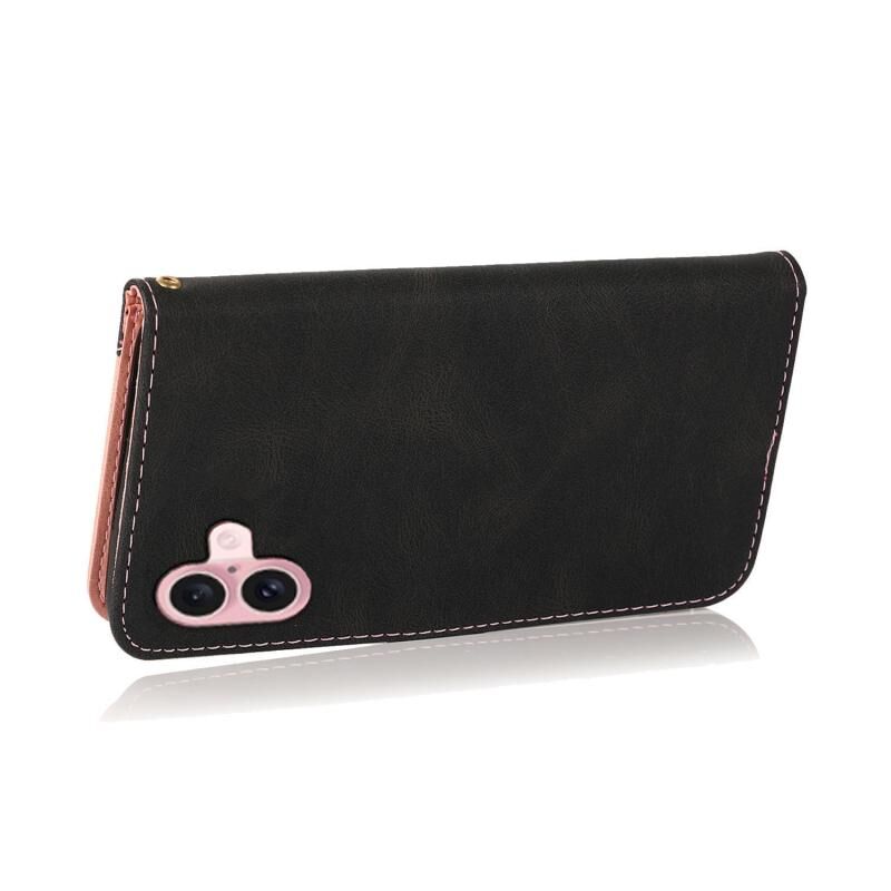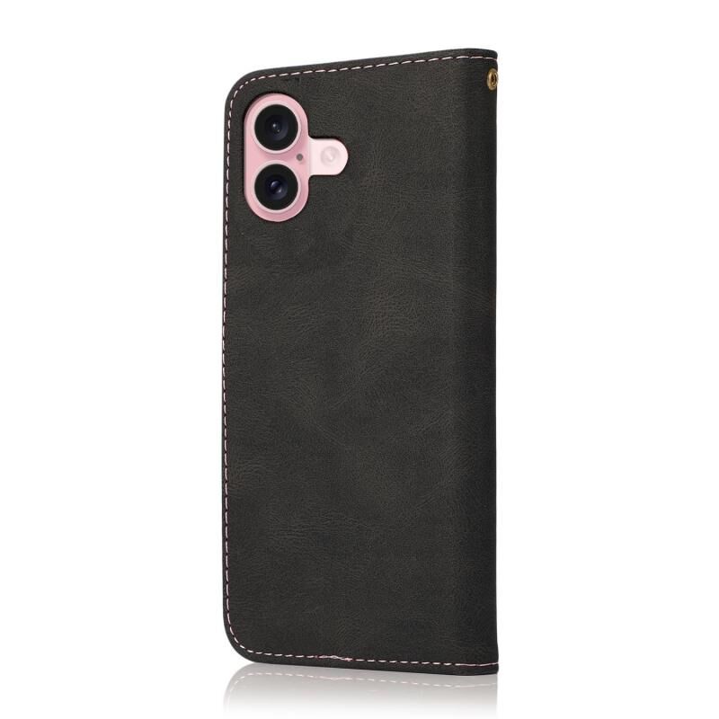 Θήκη τηλεφώνου από δέρμα με διπλή ραφή για iPhone 16 Plus (Μαύρο Ροζ Χρυσό)