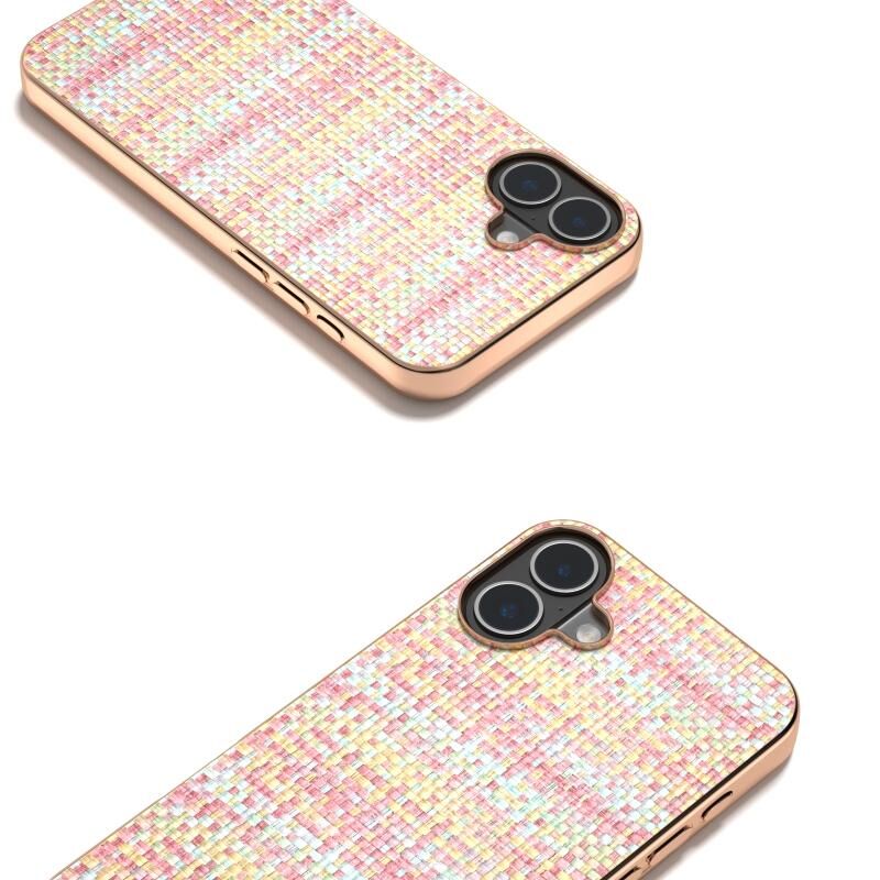 Θήκη τηλεφώνου από PU με υφή πλέγματος και ηλεκτρολυτικό πλαίσιο για iPhone 16 Plus (Μπλε)