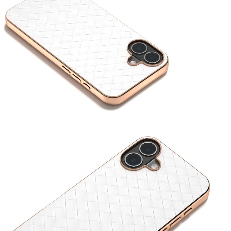 Θήκη τηλεφώνου από PU με υφαντή υφή και επιμεταλλωμένο πλαίσιο για iPhone 16 Plus (Λευκό)