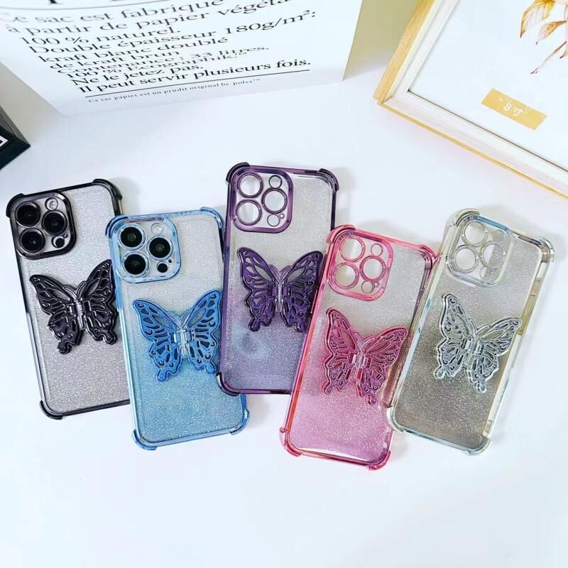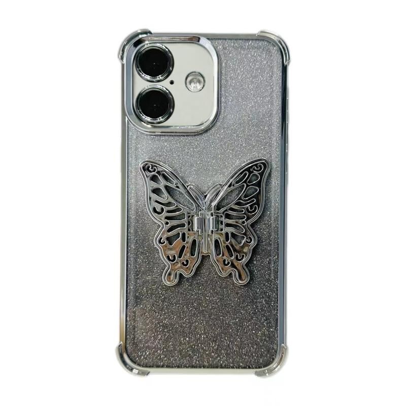 Θήκη τηλεφώνου TPU για iPhone 16 Plus με ηλεκτρολυτική λάμψη, τρισδιάστατο πεταλούδα και προστασία από κρούσεις στις τέσσερις γωνίες (Ασημί διαβάθμιση)