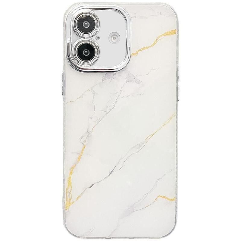 For iPhone 16 Plus Electroplated Marble Texture Phone Case(Gold White M1)
