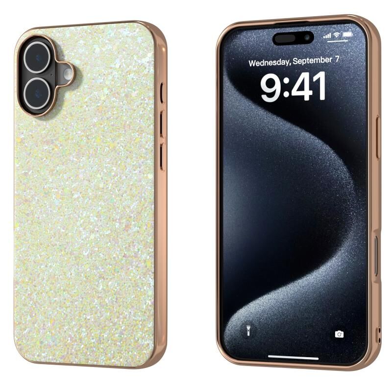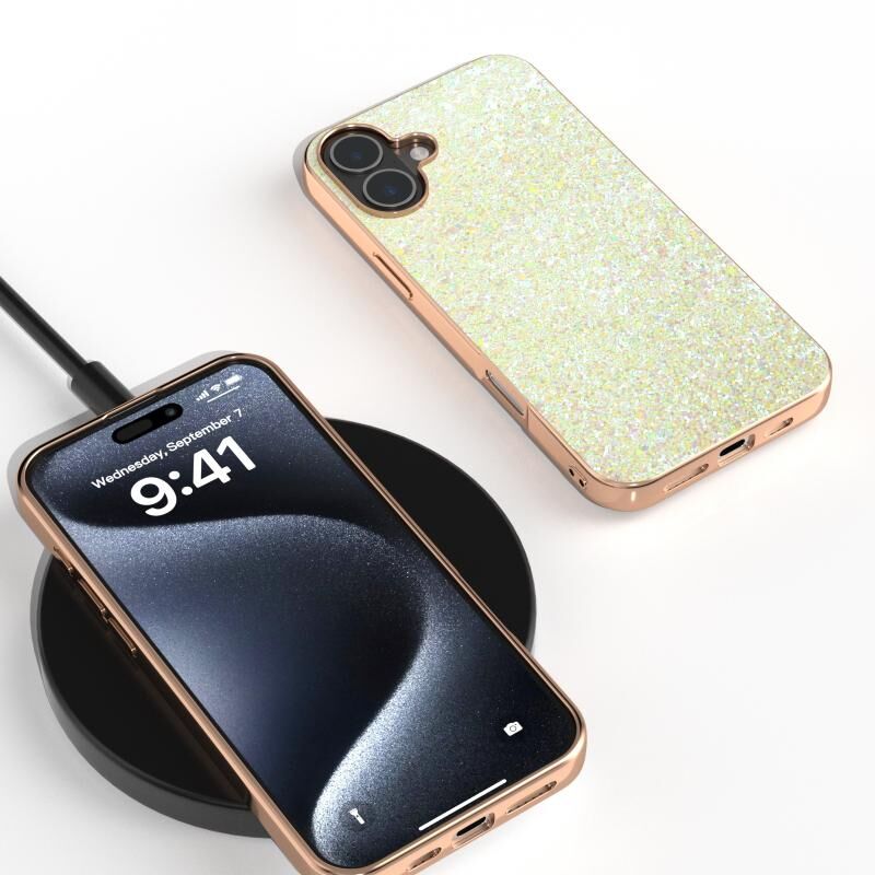 Θήκη τηλεφώνου με ηλεκτρολυτικό πλαίσιο και πολύχρωμη λάμψη για iPhone 16 Plus (Σκούρο Ροζ)