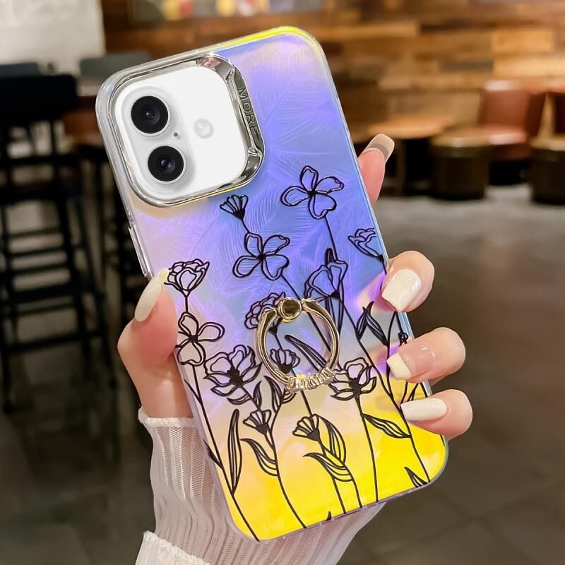 Θήκη τηλεφώνου TPU με Ηλεκτρολυτικό Λασερ, Ανθοφορικό Δαχτυλίδι Στήριξης για iPhone 16 Plus (Σχέδιο AH3 με Ανθισμένα Λουλούδια)