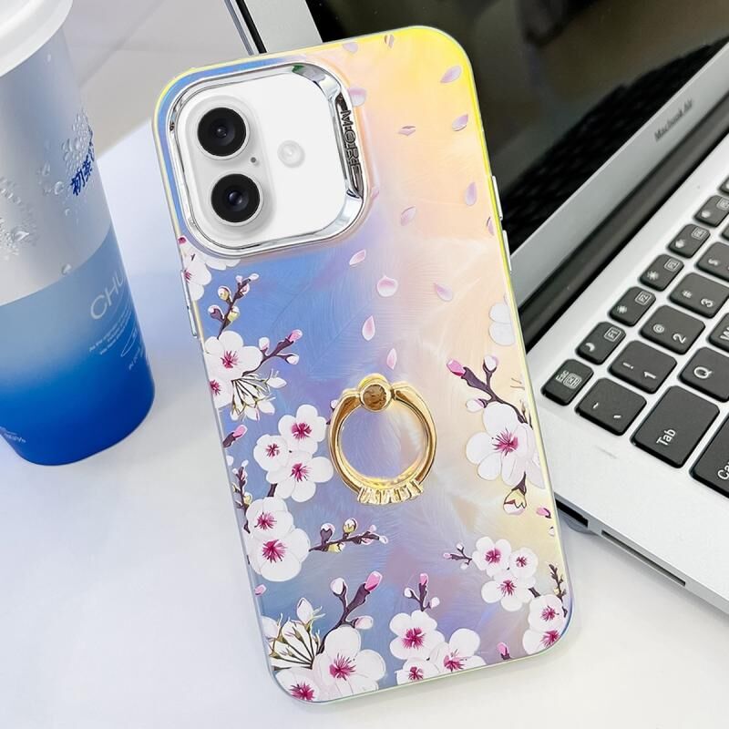 Θήκη τηλεφώνου TPU με Ηλεκτρολυτική Λασκαρισμένη Ανθοφορία και Δακτύλιο Στήριξης για iPhone 16 Plus (Δαμασκηνιά AH18)