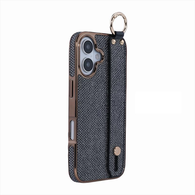 For iPhone 16 Plus Electroplating Loose Powder Wristband Holder Phone Case(Black)