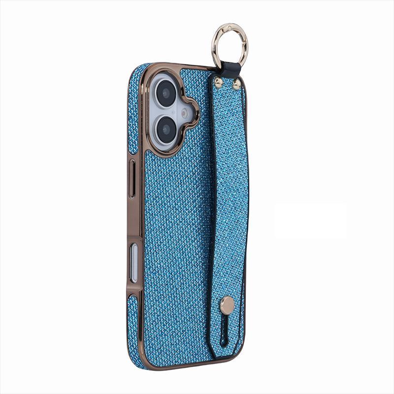 For iPhone 16 Plus Electroplating Loose Powder Wristband Holder Phone Case(Blue)