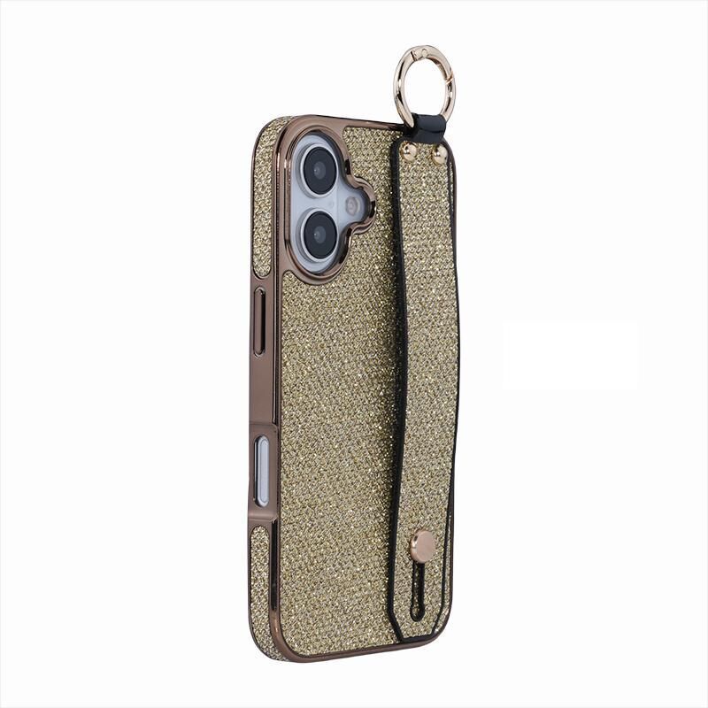 For iPhone 16 Plus Electroplating Loose Powder Wristband Holder Phone Case(Gold)