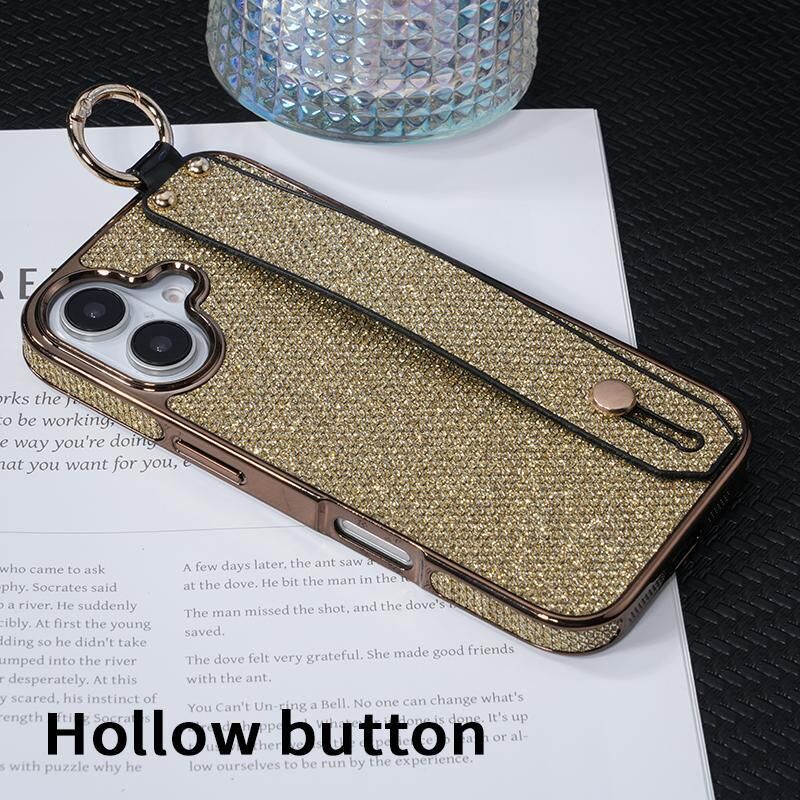 For iPhone 16 Plus Electroplating Loose Powder Wristband Holder Phone Case(Purple)