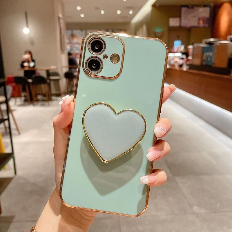 For iPhone 16 Plus Electroplating Love Heart Holder TPU Phone Case(Green)