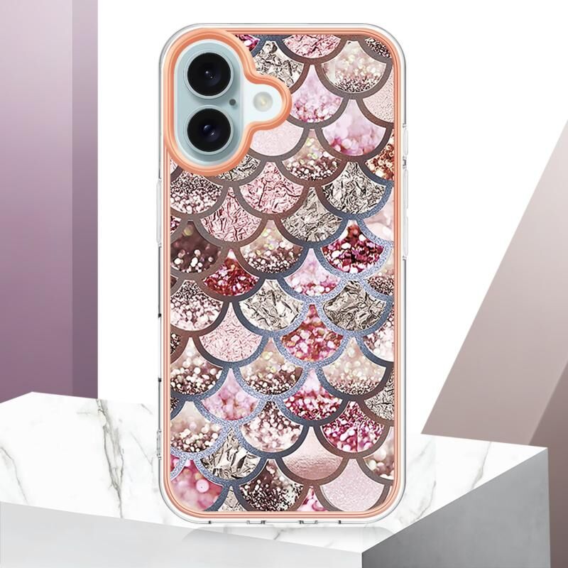 Θήκη για iPhone 16 Plus με σχέδιο επιμετάλλωσης IMD TPU αντικραδασμική (Ροζ Λέπια)