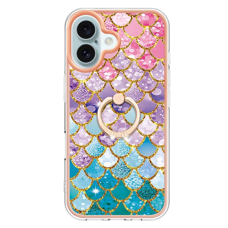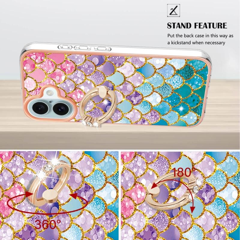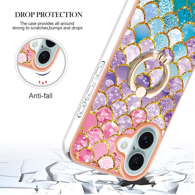 Θήκη για iPhone 16 Plus με Επικάλυψη Ηλεκτρολυτικής Επεξεργασίας, Μοτίβο IMD, Αντικραδασμική από TPU με Δαχτυλίδι Στήριξης και Ρητίνες (Πολύχρωμες Λέπια)