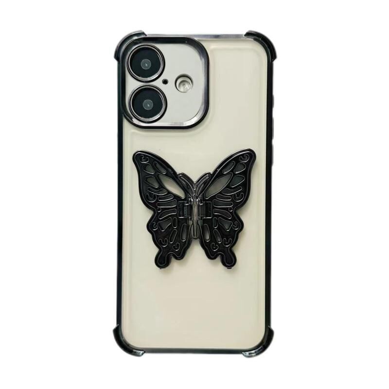 For iPhone 16 Plus Electrpolated 3D Butterfly Holder TPU Phone Case(Black)