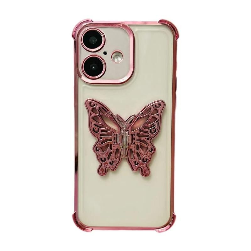 Θήκη τηλεφώνου TPU με Ηλεκτρολυπτό 3D Πεταλούδα για iPhone 16 Plus (Ροζ)