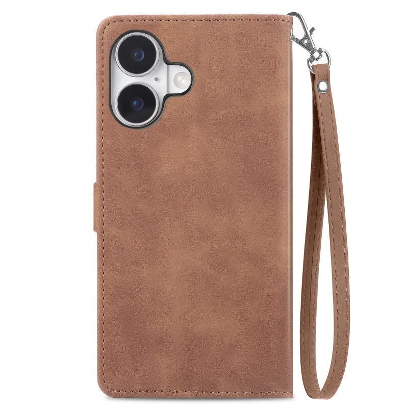 Θήκη τηλεφώνου από δέρμα με ανάγλυφα λουλούδια και φερμουάρ για iPhone 16 Plus (Καφέ)